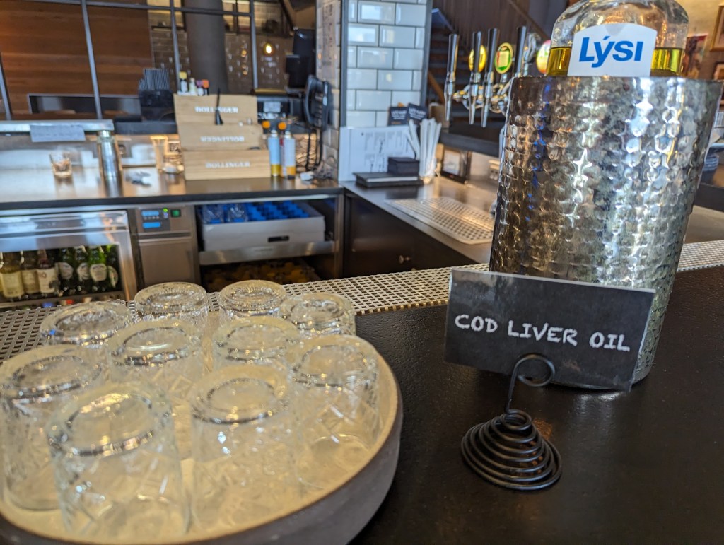 We got an early start to our day, which was surprising given our jet lag but OK with me as I’m an early riser. Breakfast was included at our hotel, and the buffet was very good, including omelets, smoked salmon, and my first introduction to skyr, an Icelandic dairy product similar to yogurt. Also available were shot glasses to pour yourself some cod liver oil. We both chose to forego that ‘treat’.