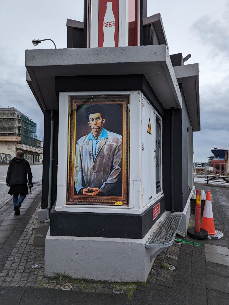 Our bellies full, we began our walk toward the harbor area where additional museums awaited us. Along the way, we passed the Seabaron restaurant which inexplicably had this painting of Kramer from “Seinfeld” on the outside.