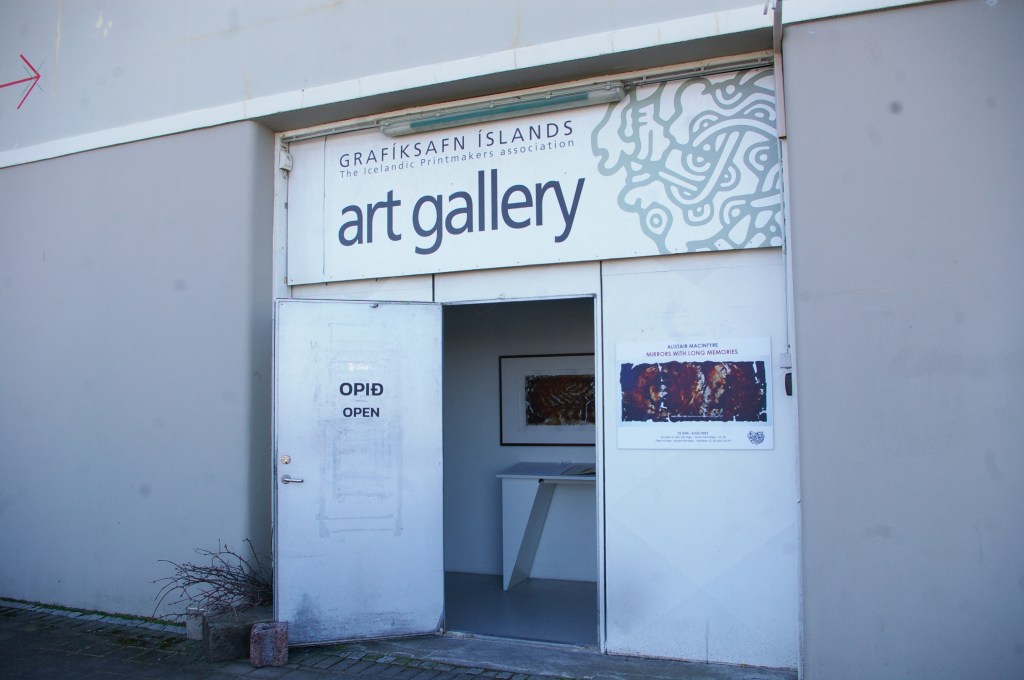 Instead, we had found the exhibition space for the Icelandic Printmakers Association (Íslensk Grafík) and were speaking with the current exhibitor and artist, Alistair Macintyre. Mr. Macintyre is British but lives in Iceland. He walked us through his exhibition entitled Mirrors with Long Memories and explained his artwork, which he creates by imprinting photographic images on blocks of ice. As the ice melts, the remains of the image are captured on heavy paper interacting with the meltwater. The resulting images were interesting and unique, reflecting the original photograph while also being original in its own right. The first set of images is the most relatable as one can recognize the running animals from the original photographs.